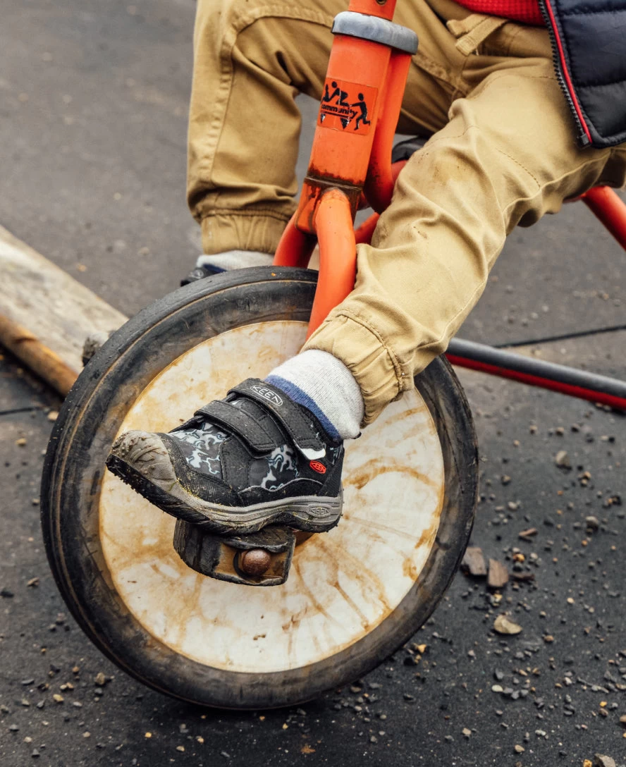 Toe-to-heel protection. Ear-to-ear grins. We extended the iconic protection of our durable rubber toe bumper to the heel. Ready to bike, skate, and scoot.