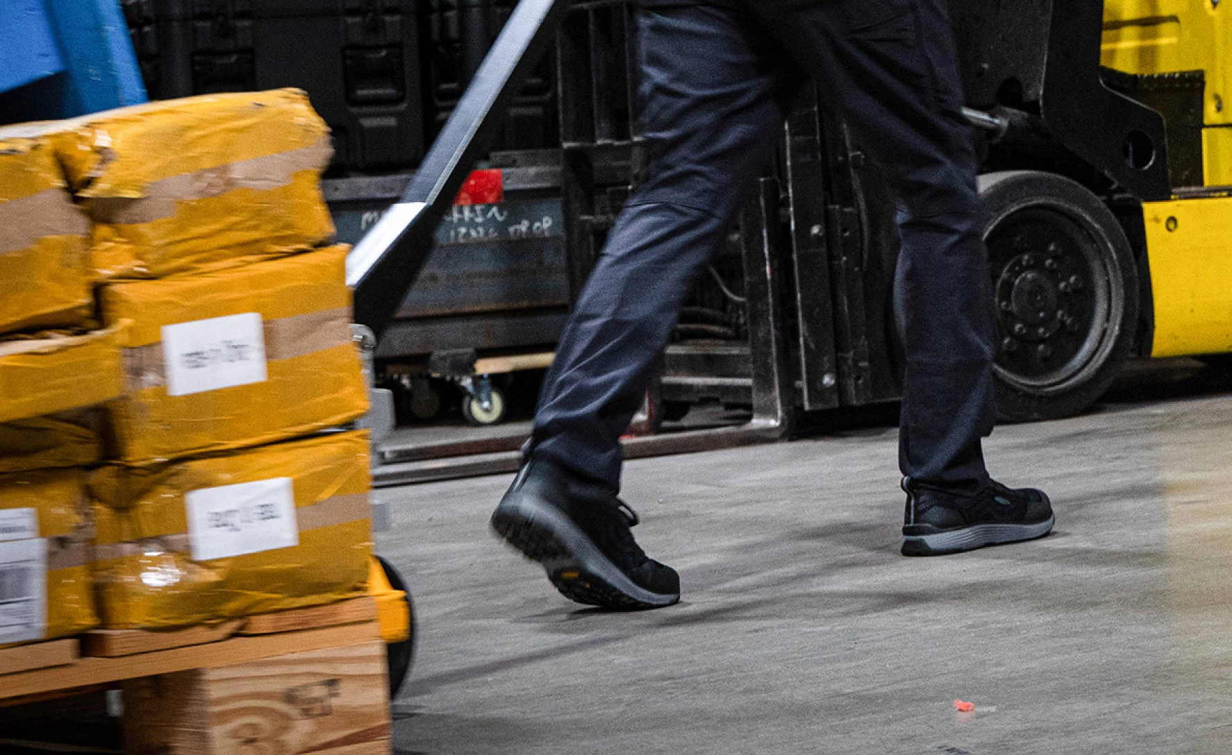 A responsive, breathable work sneaker for sensitive assembly duties, with energy-returning cushioning and a slip-resistant ESD outsole.