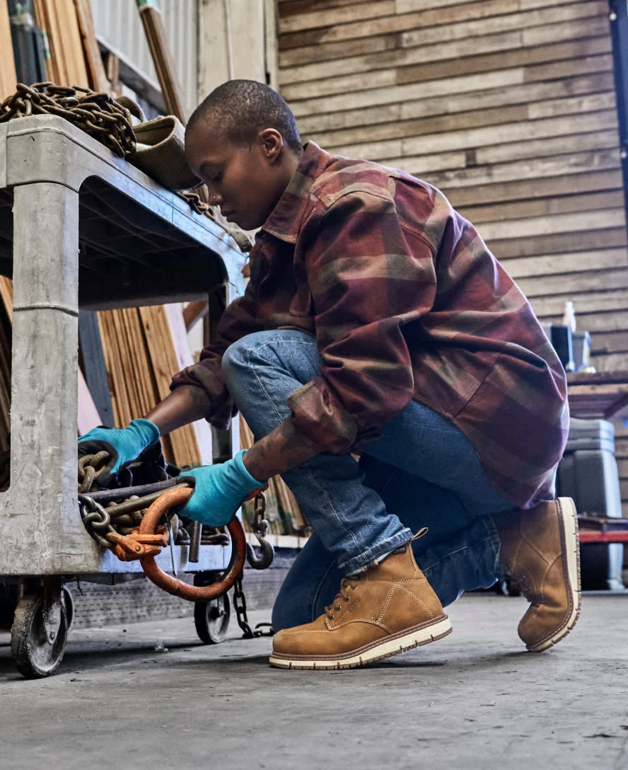 All-leather, with an air-infused midsole, lightweight safety features, and women’s-specific fit, this 6″ waterproof work boot feels and performs like no other.